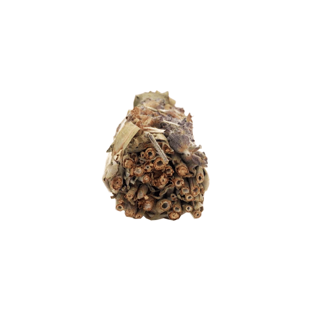 Este atado de 10 cm es una fórmula ceremonial de limpieza, calma y sanación emocional. Une la salvia blanca para purificar el campo energético, el eucalipto para abrir las vías respiratorias y energéticas, la lavanda para relajar la mente, y los pétalos de rosa para suavizar el corazón.